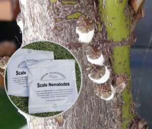 - We then recommend Scale Nematodes to try and kill the scale insect. This involves spraying the plants with nematodes 4 times. You need to apply when the daytime temps will be 12c or above and if possible wrap the trees in bins bags after each application for 48 hours to keep the nematodes moist. If temps are too low then use SB during the winter and then use the nematodes in the spring when temps rise.