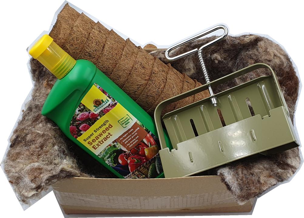 This Soil Blocker Giftbox contains a Soil Block Maker, along with coir pots for growing on plants and Root Success treatment, so you can produce “plastic-free” plants. Delivered in a plain box ready for wrapping, this giftbox contains a Soil Block Maker, 10 x Midi Coir Pots and Seaweed Feriliser wrapped in a Wool Planting Roll (that can be re-used). Contents normally £62.97, Price £49.99 saving £12.98. Each box contains :-