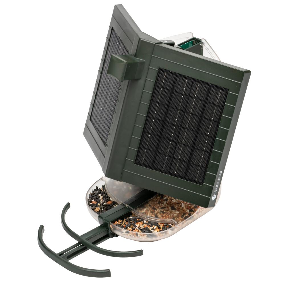 This NEW Solar Powered Wi-Fi Smart Bird Feeder allows you to watch the birds feeding in your garden from your phone WITHOUT the need for cables. Capture HD Pictures and Videos of birds feeding from the the dual seed chambers. Being solar powered (solar panels are built into the roof on both sides) it is easy to decide where to site it i.e. any sunny spot, but if the batteries need a top-up, you can use the USB cable included. Stream real-time photos and videos directly to your smartphone via WI-FI – connect via an app. The hinged lid makes it easy to refill – simply tip the lid back and tip the seed it. The dual chambers makes it easy to offer different foods i.e. seed and dried mealworms and than watch which one they prefer!